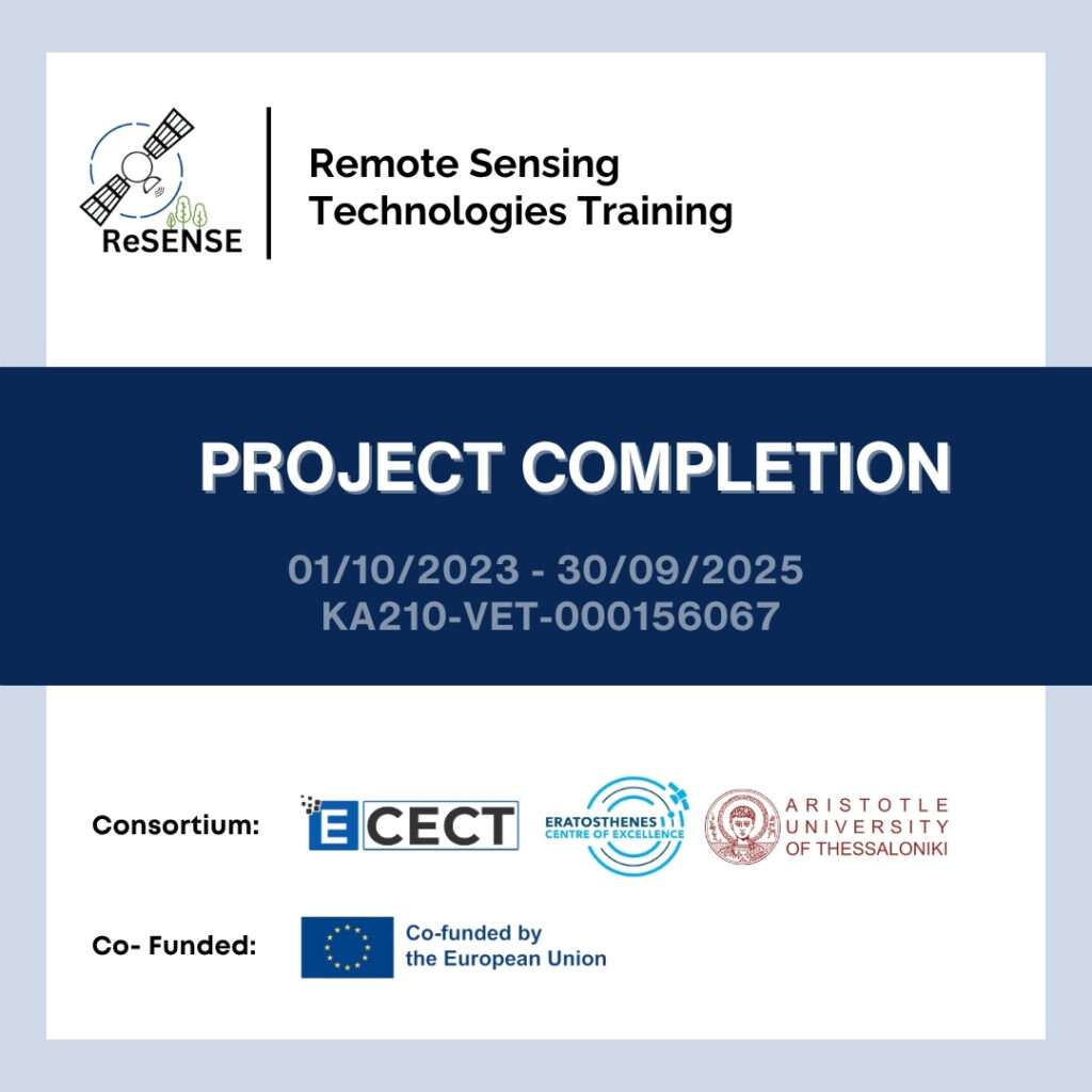 Project completion announcement! 🎉 Project completion announcement! After two impactful years, the ReSENSE project has reached its conclusion! Together, we’ve expanded knowledge and training in cutting-edge technologies that drive environmental monitoring and protection. Key achievements:Conducted research & surveys to capture academic and industry needsDeveloped training modules in GIS, Remote Sensing, Image Processing, Cartography, and Copernicus …